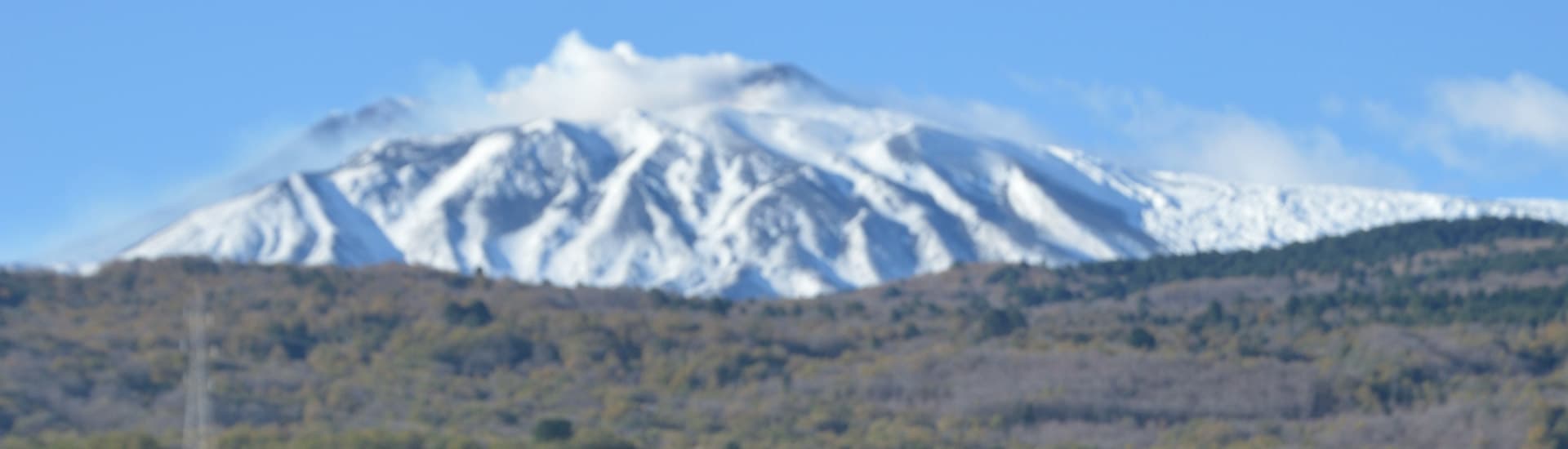 In the background Mount Etna stands tall, dividing the clear blue sky and crystal Mediterranean Sea.